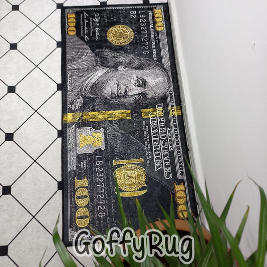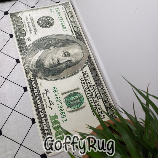 100 Dollar Bill Rug Benjamin Franklin Patterned Carpet for Kitchen Hallway Runner Bedroom Living Room Washable Nonslip Mat Aesthetic Luxury Home Office Decor