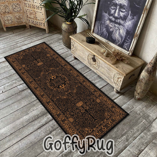 Black and Bronze Boho Chic Medallion Runner Rugs Ethnic Carpet Non-Slip Washable Bohemian Mat for Living Room Bedroom Kitchen Decor