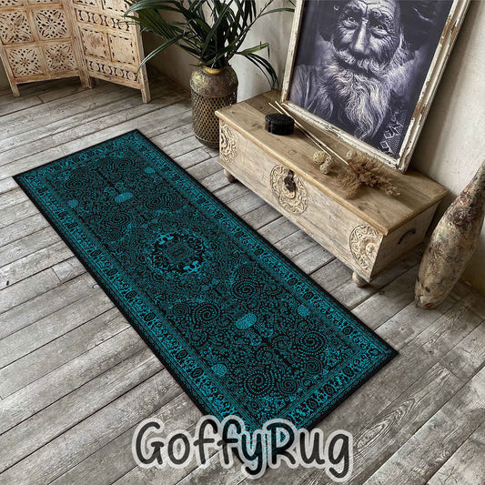 Black and Blue Boho Chic Medallion Runner Rugs Ethnic Carpet Non-Slip Washable Bohemian Mat for Living Room Bedroom Kitchen Decor