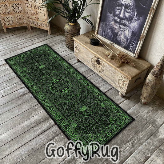 Black and Green Boho Chic Medallion Runner Rugs Ethnic Carpet Non-Slip Washable Bohemian Mat for Living Room Bedroom Kitchen Decor