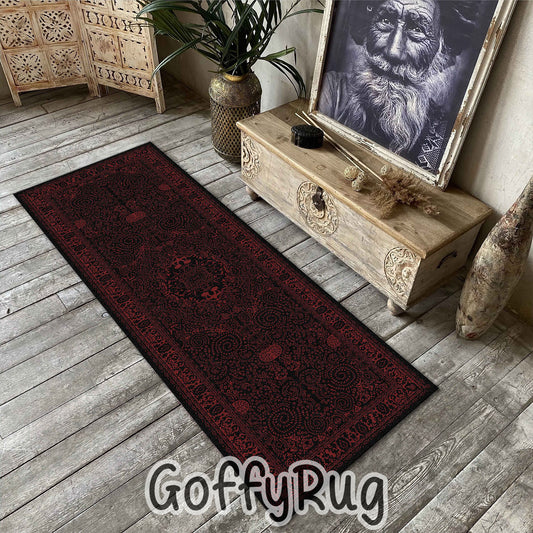 Black and Burgundy Boho Chic Medallion Runner Rugs Ethnic Carpet Non-Slip Washable Bohemian Mat for Living Room Bedroom Kitchen Decor