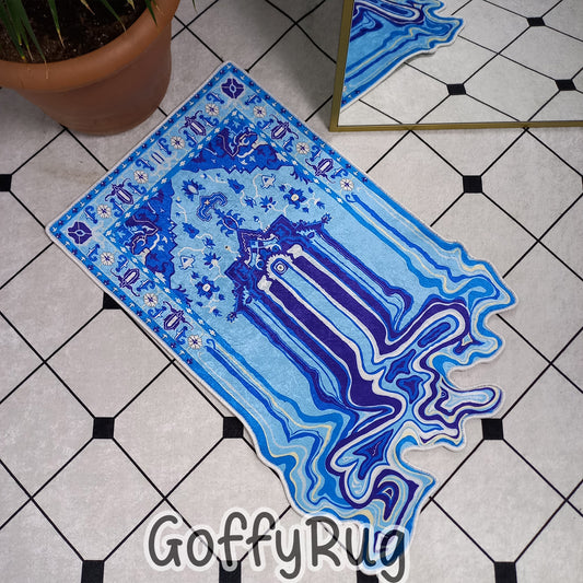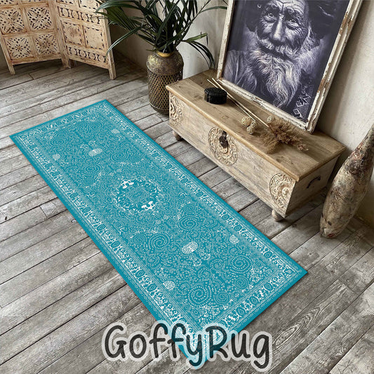 Blue Color Melting Rug Boho Chic Medallion Bohemian Carpet for Living Room Bedroom Kitchen Liquify Floral Aesthetic Mat Home Decor Gift
