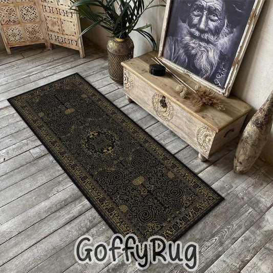 Black and Gold 100 Dollar Bill Runner Rug Benjamin Franklin Patterned Carpet for Kitchen Hallway Bedroom Living Room Luxury Home Office Decor