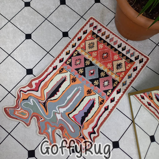 Kilim Patterned Melting Rug Boho Chic Medallion Bohemian Carpet for Living Room Bedroom Kitchen Liquify Floral Aesthetic Mat Home Decor Gift