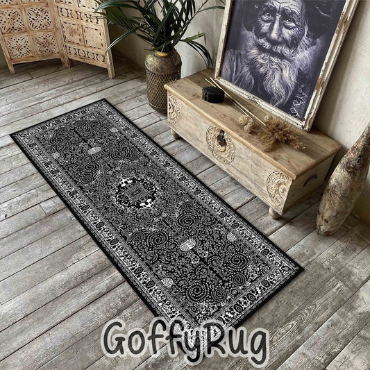Black and Silver Boho Chic Medallion Runner Rugs Ethnic Carpet Non-Slip Washable Bohemian Mat for Living Room Bedroom Kitchen Decor