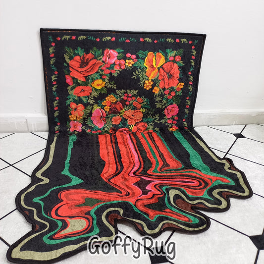 Black and Red Melting Rug Boho Chic Medallion Bohemian Carpet for Living Room Bedroom Kitchen Liquify Floral Aesthetic Mat Home Decor Gift