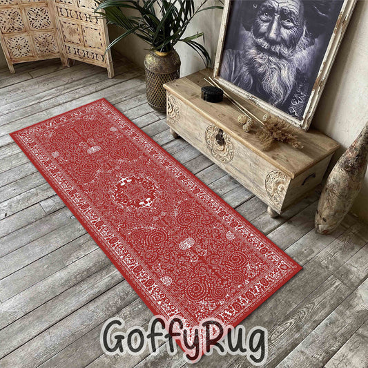 Red and White Boho Chic Medallion Runner Rugs Ethnic Carpet Non-Slip Washable Bohemian Mat for Living Room Bedroom Kitchen Decor