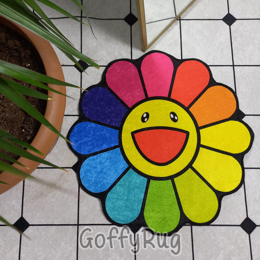 Colorful Takashi Murakami Rug Rainbow Carpet Daisy Shaped Mat Contemporary Art Pop Culture Hypebeast Decor