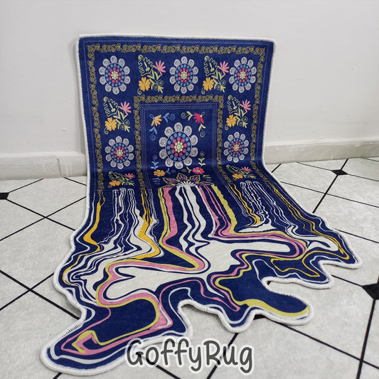 Blue Color Melting Rug Boho Chic Medallion Bohemian Carpet for Living Room Bedroom Kitchen Liquify Floral Aesthetic Mat Home Decor Gift