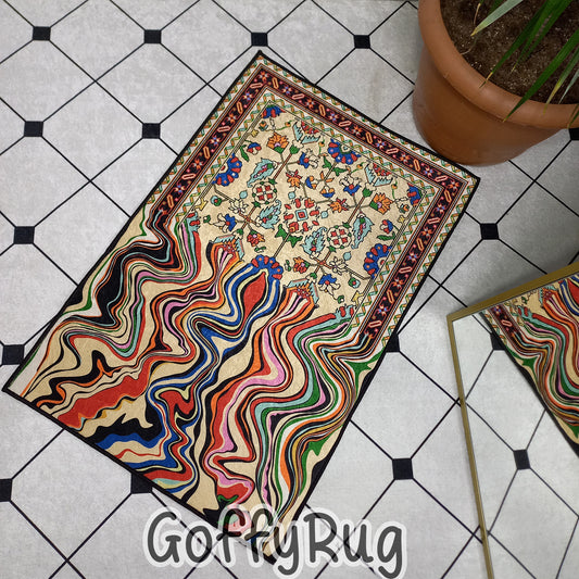 Kilim Patterned Melting Rug Boho Chic Medallion Bohemian Carpet for Living Room Bedroom Kitchen Liquify Floral Aesthetic Mat Home Decor Gift