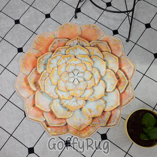 Lotus Flower Shaped Tan Color Carpet for Bedroom Kitchen Entrance Bathmat Non-Slip Washable Soft Thick Floral Mat Decor