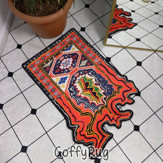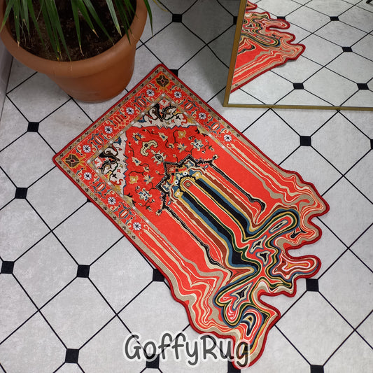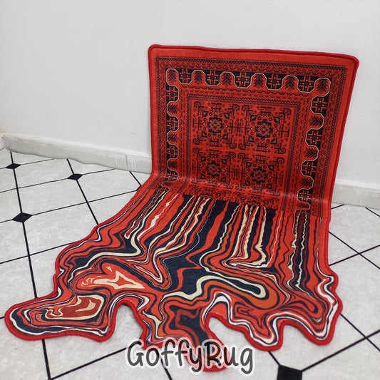 Red and Blue Persian Melting Rug Boho Chic Medallion Bohemian Carpet for Living Room Bedroom Kitchen Liquify Floral Aesthetic Mat Home Decor Gift