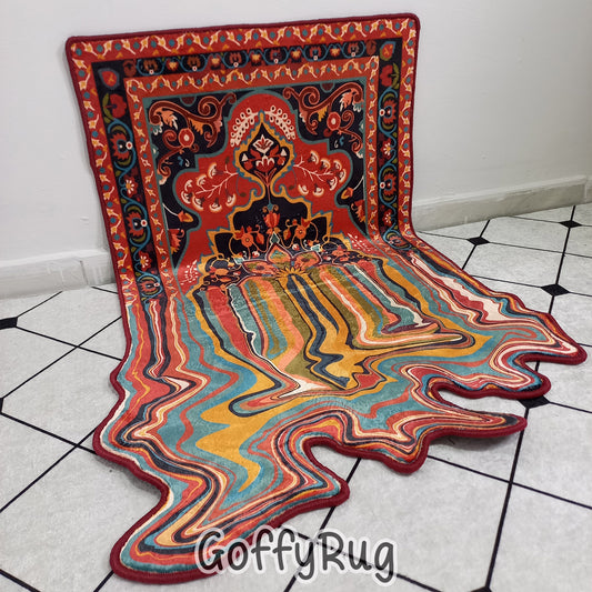 Persian Melting Rug Boho Chic Medallion Bohemian Carpet for Living Room Bedroom Kitchen Liquify Floral Aesthetic Mat Home Decor Gift