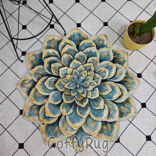 Lotus Flower Shaped Turquoise Carpet for Bedroom Kitchen Entrance Bathmat Non-Slip Washable Soft Thick Floral Mat Decor