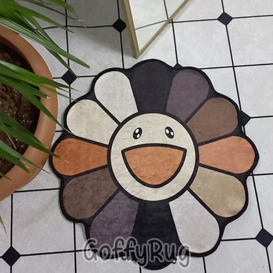 Takashi Murakami Rug Dark Color Rainbow Carpet Daisy Shaped Mat Contemporary Art Pop Culture Hypebeast Decor